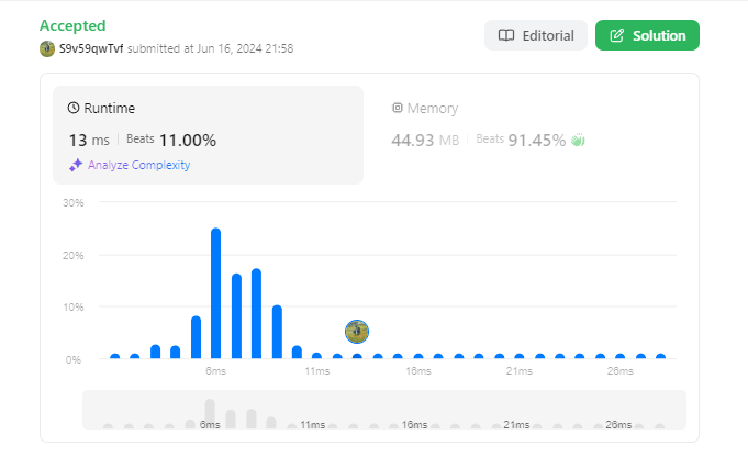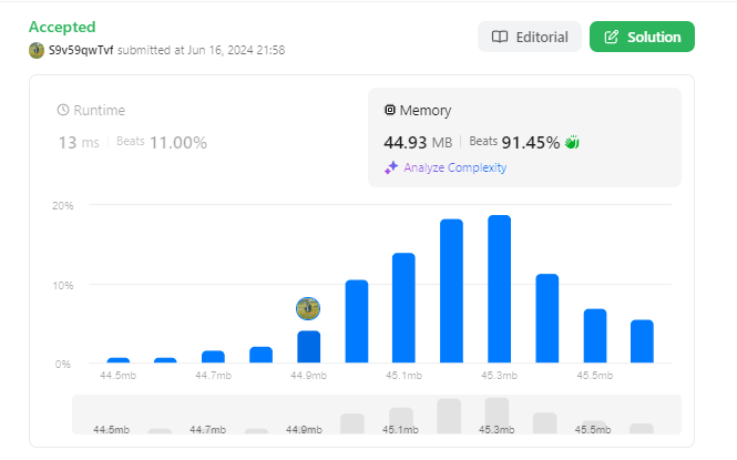런타임 입장으로 보면 다른 사람들의 비해 시간이 조금 더 걸리는 코드를 짰지만, 메모리 크기 요소를 보았을 때 비교적 적게 소비를 해 나름 나쁘지 않았다고 안도 느낀 것 같다 😮💨