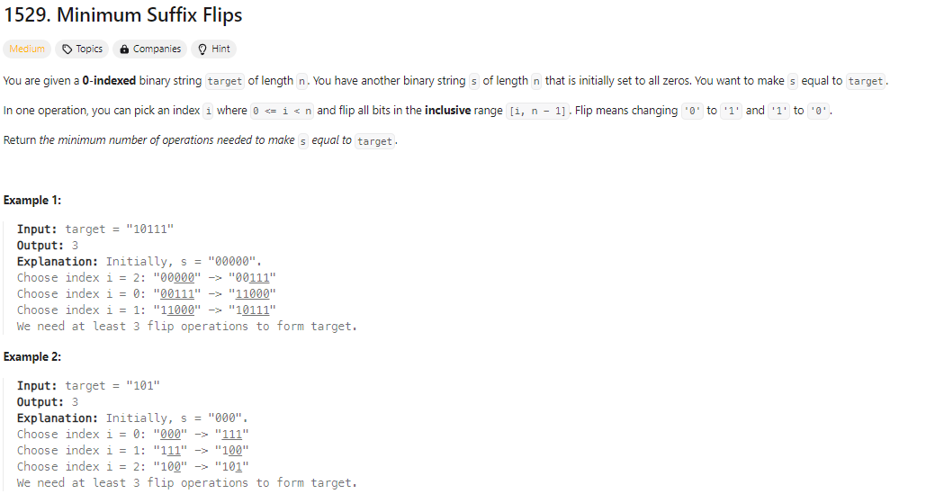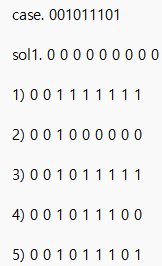'001011101' 을 입력받았을 때, 입력 받은 자릿 수 길이만큼 '000000000' 을 만들어 주고 '1'과 '0' 만 반전시켜 최대한 적은 횟수로 입력받은 값과 똑같은 값을 만들어줘야 하는 문제다. 그렇다면, 이 문제에 어떻게 해결해야 할까