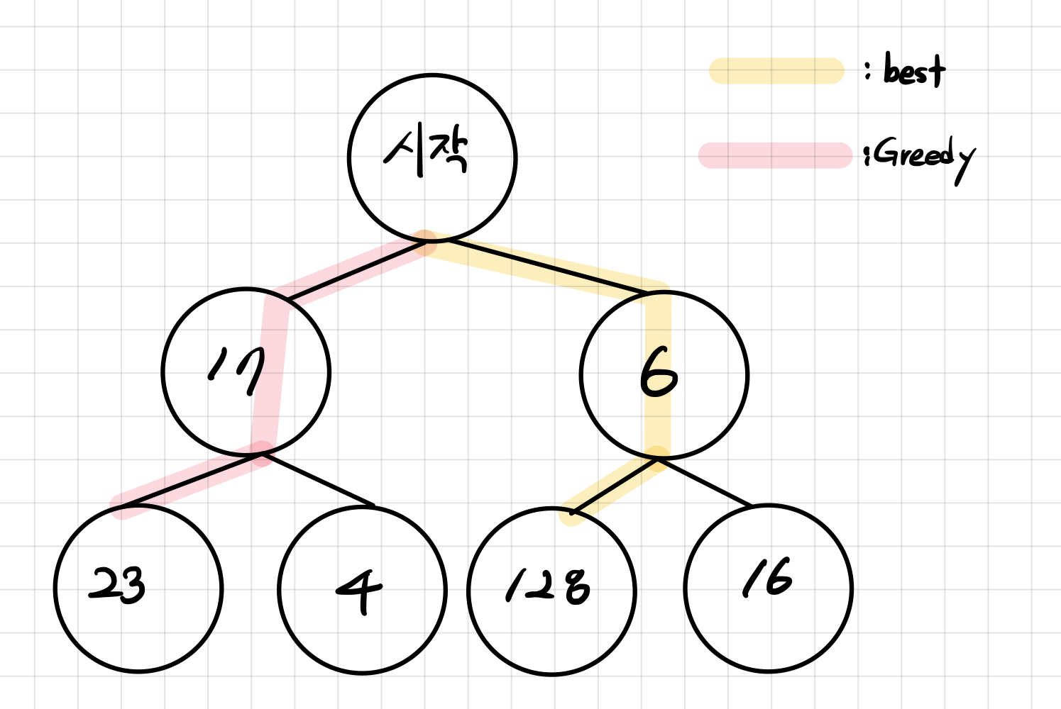 다음 그림과 같이 눈 앞에 좋은 값만 추출하는 것을 탐욕 알고리즘이라 할 수 있겠다. 우선 어떤 문제인지 살펴보면,