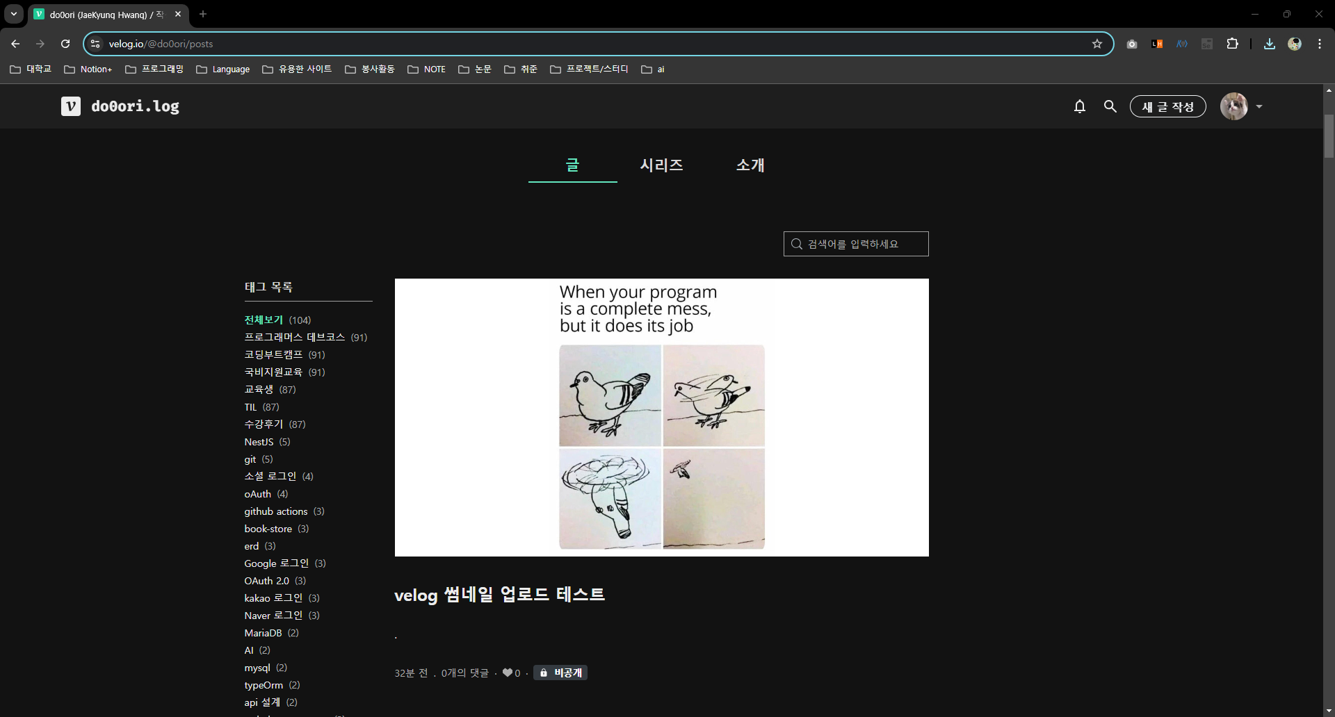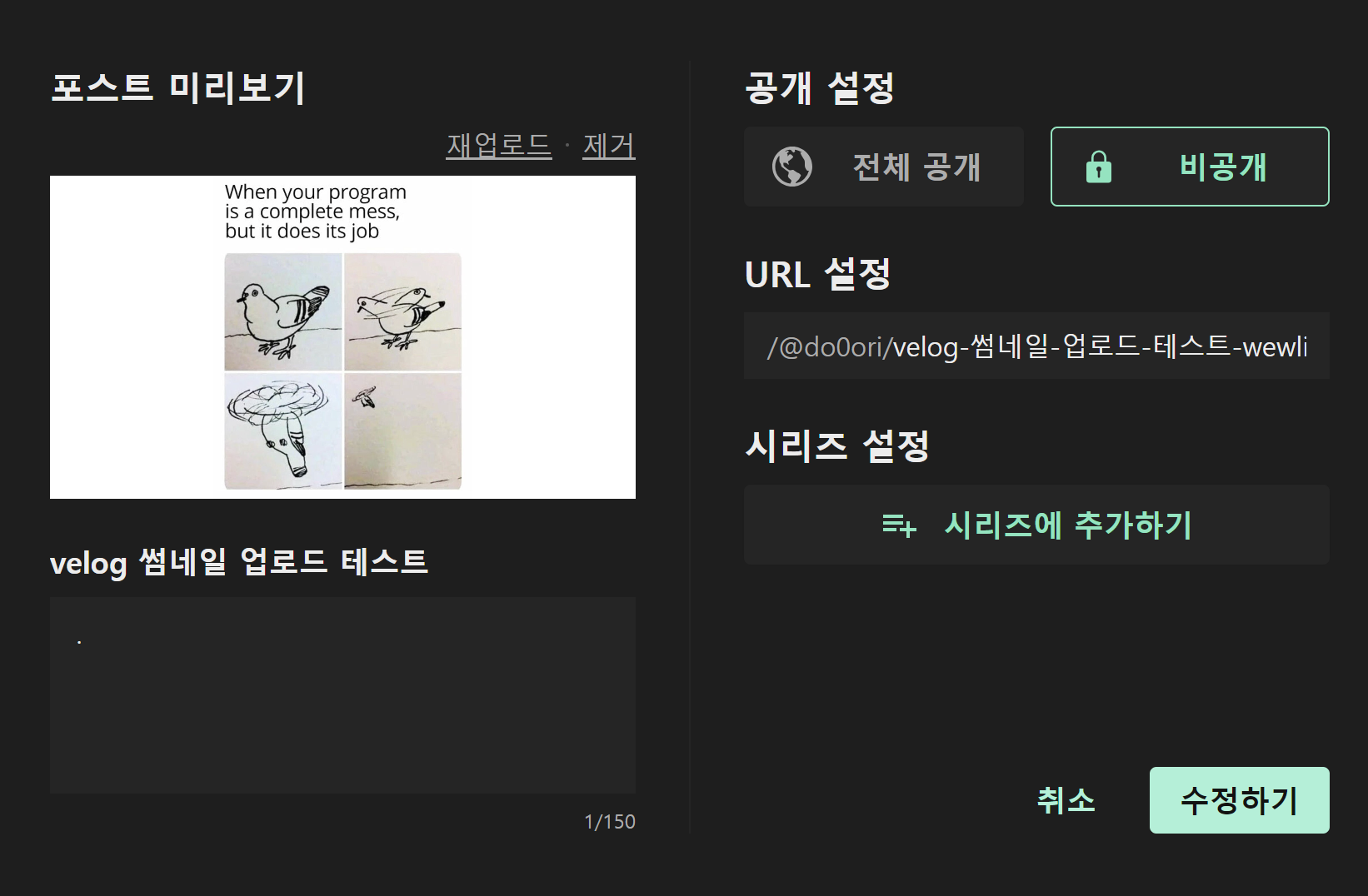 Image Ratio Padder로 수정한 이미지를 다시 velog 썸네일로 업로드하면 잘리지 않고 잘 보이는 것을 확인할 수 있다. 😎