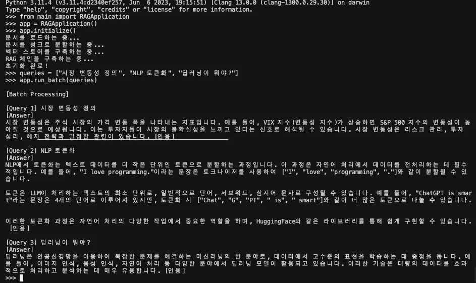 ├── main.py # RAGApplication (검색/채팅/비동기/배치 실행)