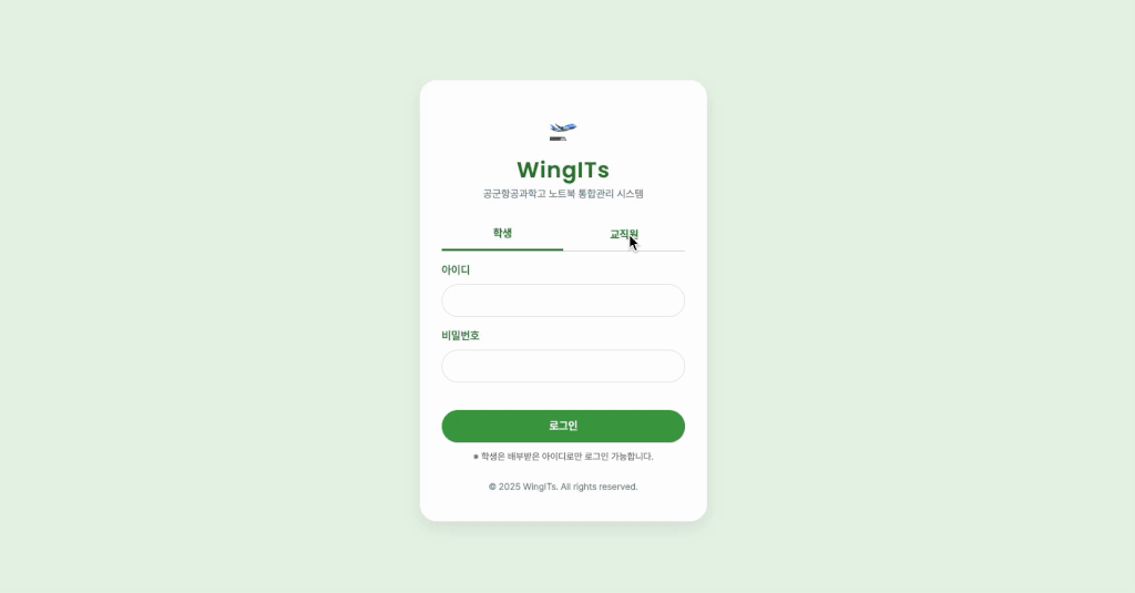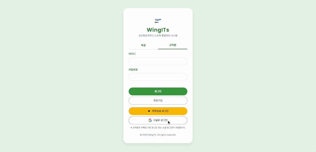 처음에는 /login 하나로 통합된 폼만 제공했지만, 학생과 교직원이 혼동하지 않도록 UI 상에서만 탭으로 구분하는 방식으로 개선했습니다.