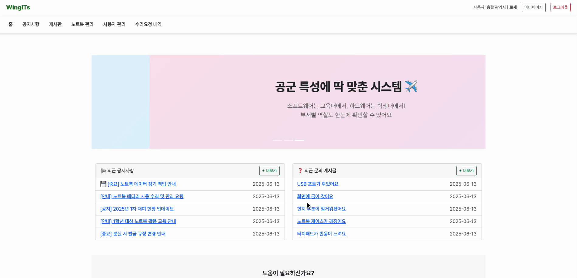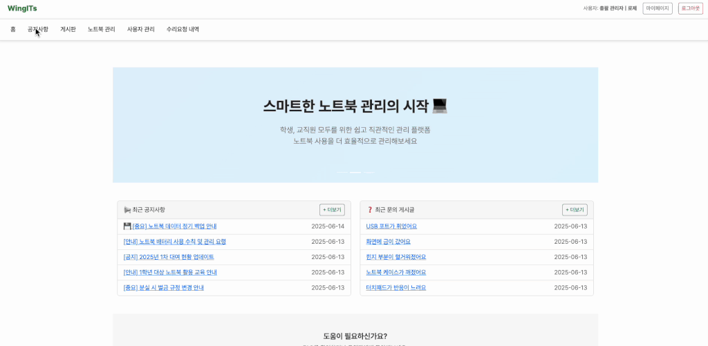 이를 해결하기 위해, 공지사항 · 게시판 · FAQ를 웹 시스템 내에 별도로 구현하고 역할별 접근 권한, 검색 기능, 댓글 기능 등을 통해 효율적인 커뮤니케이션 구조를 만들고자 했습니다.