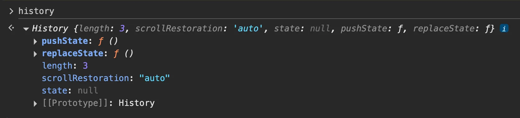 pushState : 세션 히스토리에 새로운 URL 상태를 쌓는다.replaceState: 세션 히스토리에 새로운 URL을 쌓지 않고, 현재 URL을 대체한다.실제로는 화면 이동이 일어나지 않지만, 히스토리에는 URL 스택이 쌓이고, 현재 URL을 바꿔줄 수 있다.
