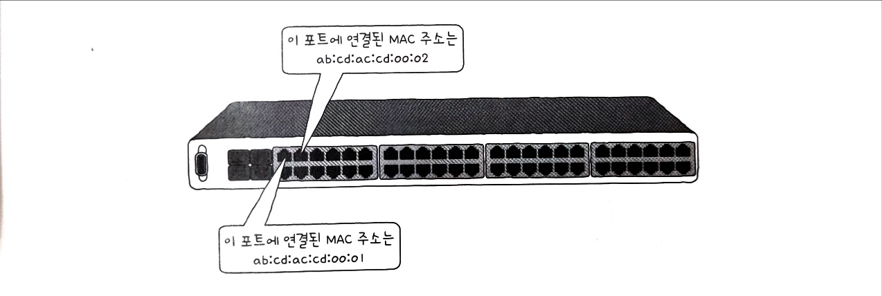 스위치는 MAC 주소 학습을 위해 포트와 연결된 호스트의 MAC 주소 간의 연관 관계를 메모리에 표 형태로 기억한다.