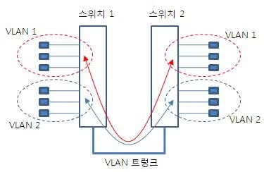 한 VLAN에서 전송한 프레임들을 트렁크 링크를 통해 다른 스위치로 전달해준다.