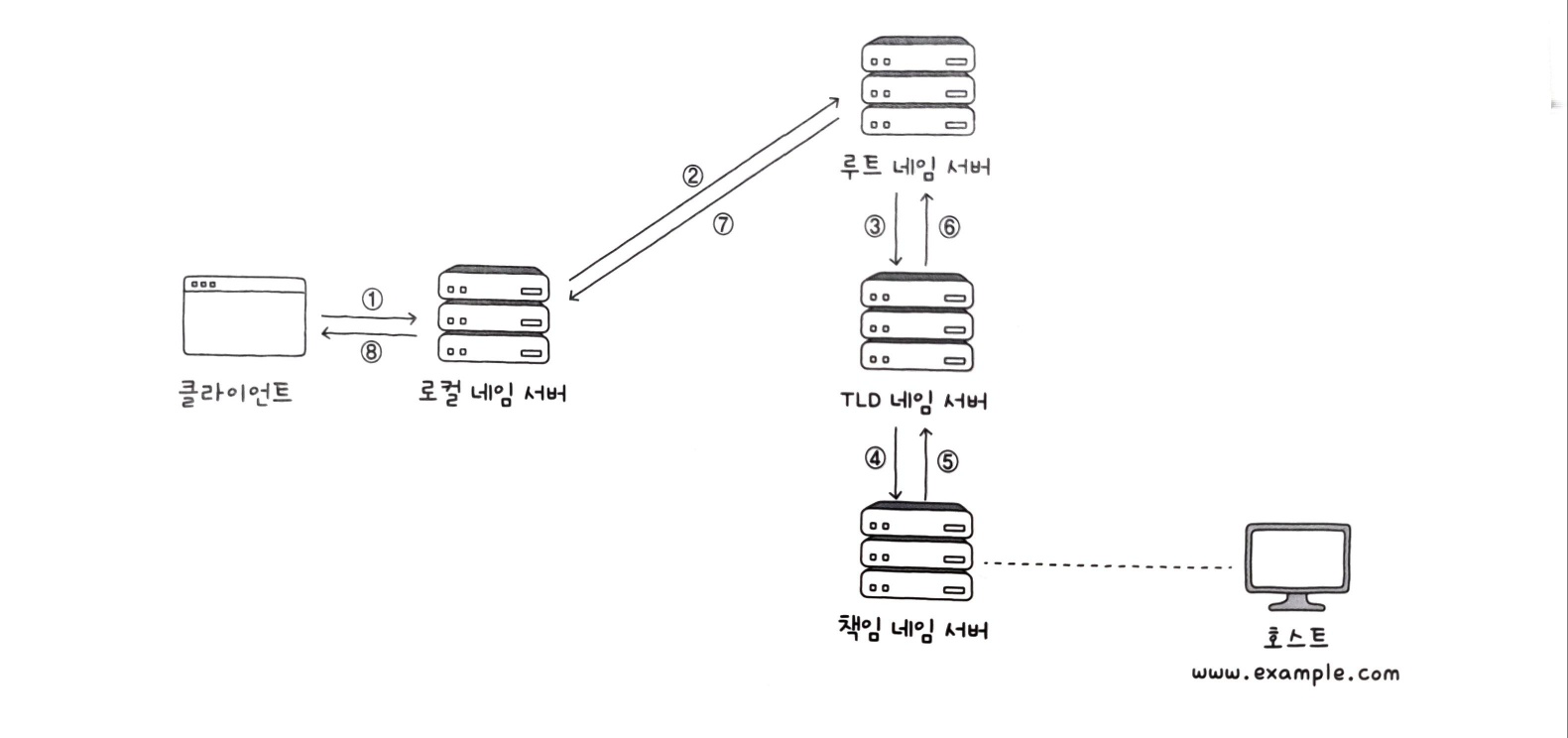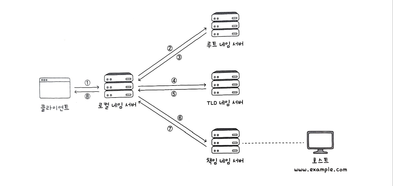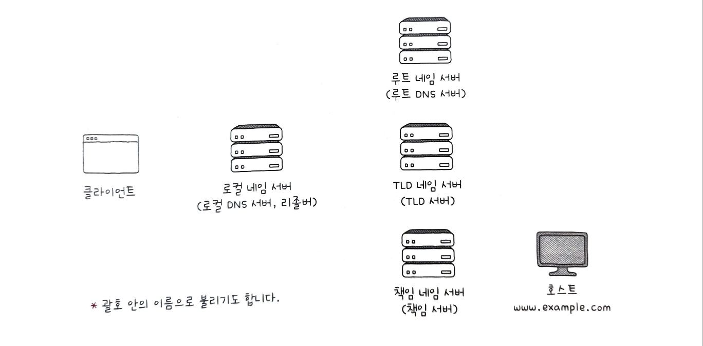 로컬 네임 서버루트 네임 서버TLD 네임 서버책임 네임 서버
