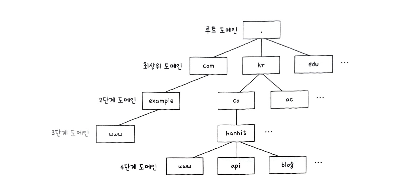 이렇게 계층적이고 분산된 도메인 네임에 대한 관리 체계를 도메인 네임 시스템, 줄여서 DNS라고 부른다.
