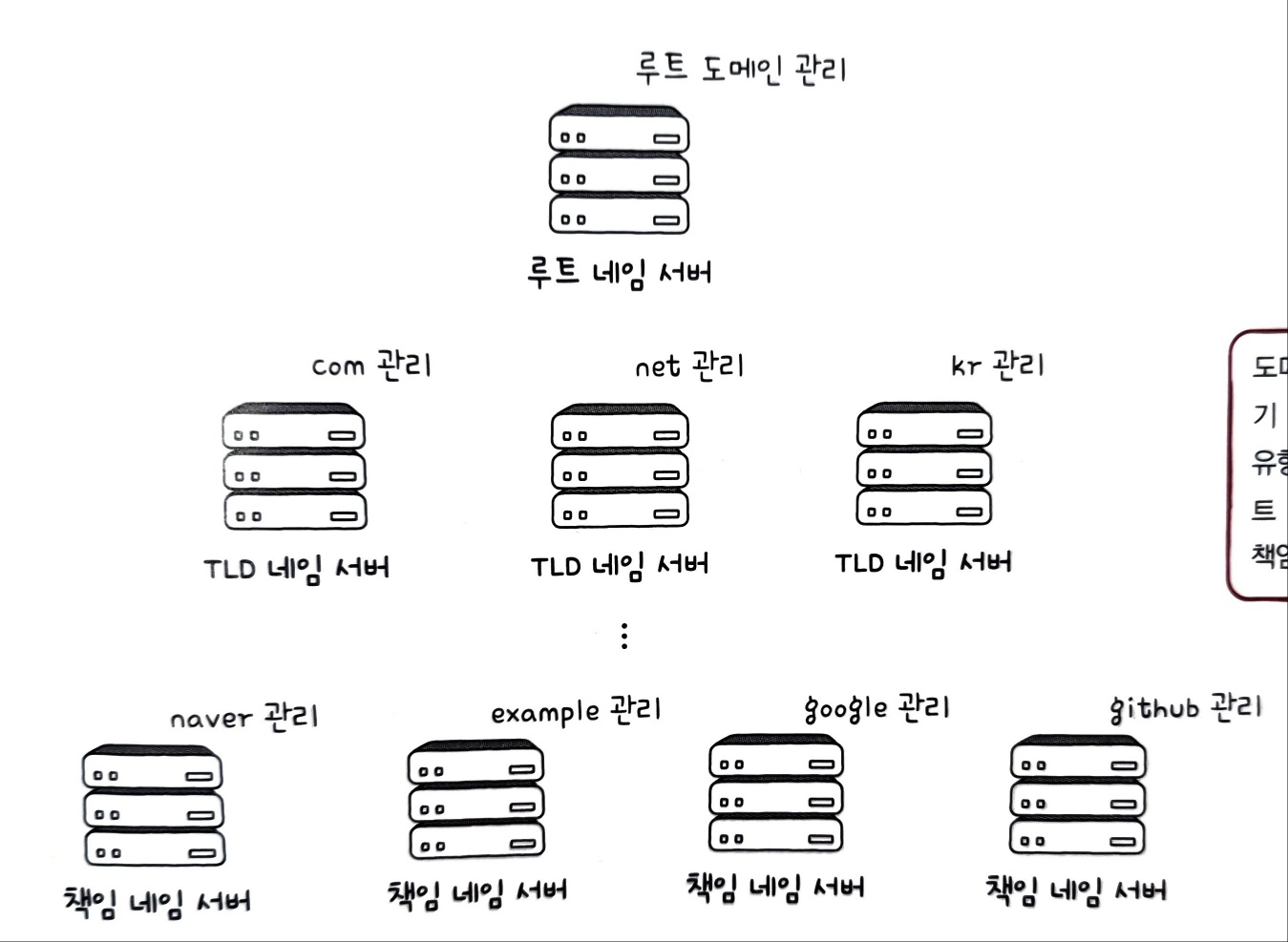 이렇게 계층적인 도메인 네임을 효율적으로 관리하기 위해 네임 서버 또한 계층적인 형태를 이룬다.