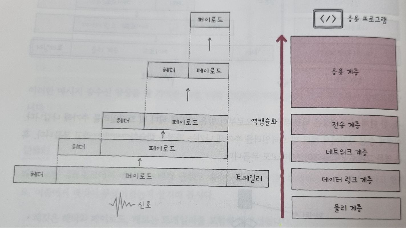 송신지 입장에서는 가장 높은 계층에서부터 가장 낮은 계층으로 이동하고,
