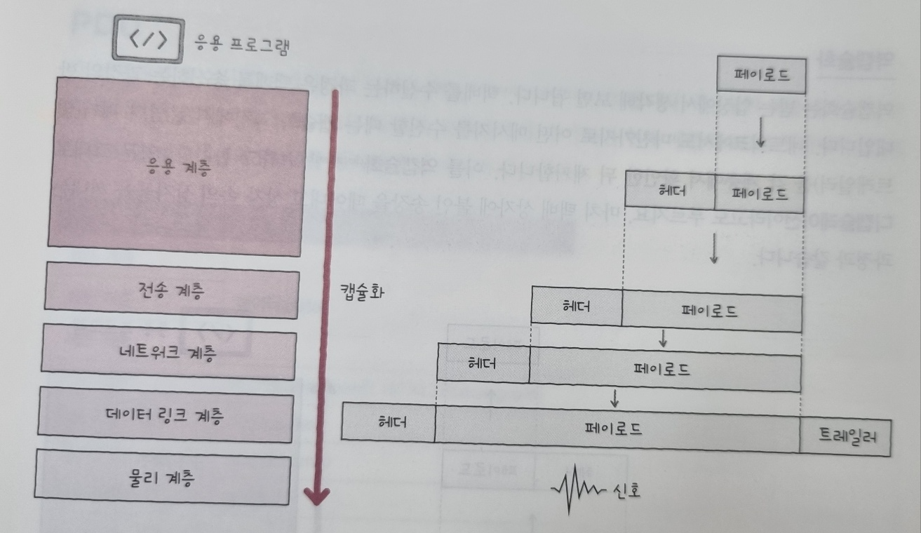 캡슐화는 프로토콜 상위 계층에서 하위 계층으로 패킷을 전달할 때 프로토콜에 걸맞은 헤더 혹은 트레일러를 덧붙이는 것을 말합니다.
