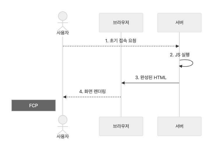 사용자에게 처음 페이지의 콘텐츠를 렌더링 하는 시점