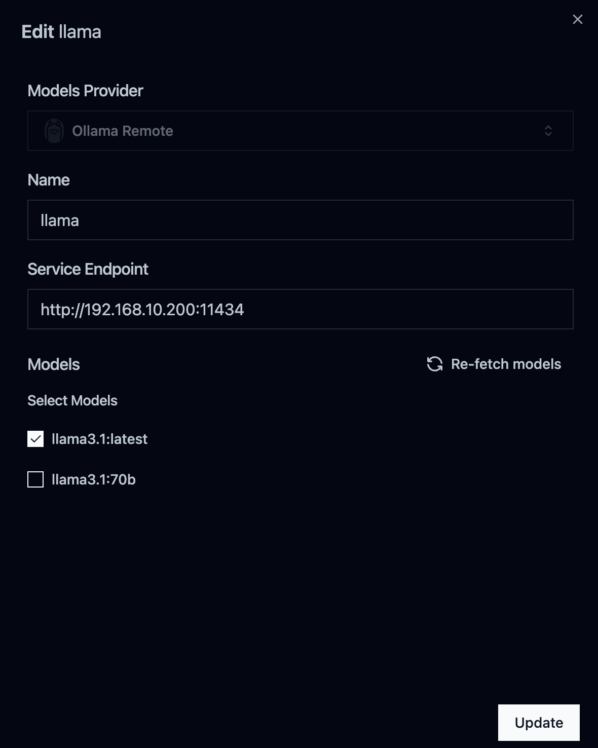 model: "llama3.1", // Default value