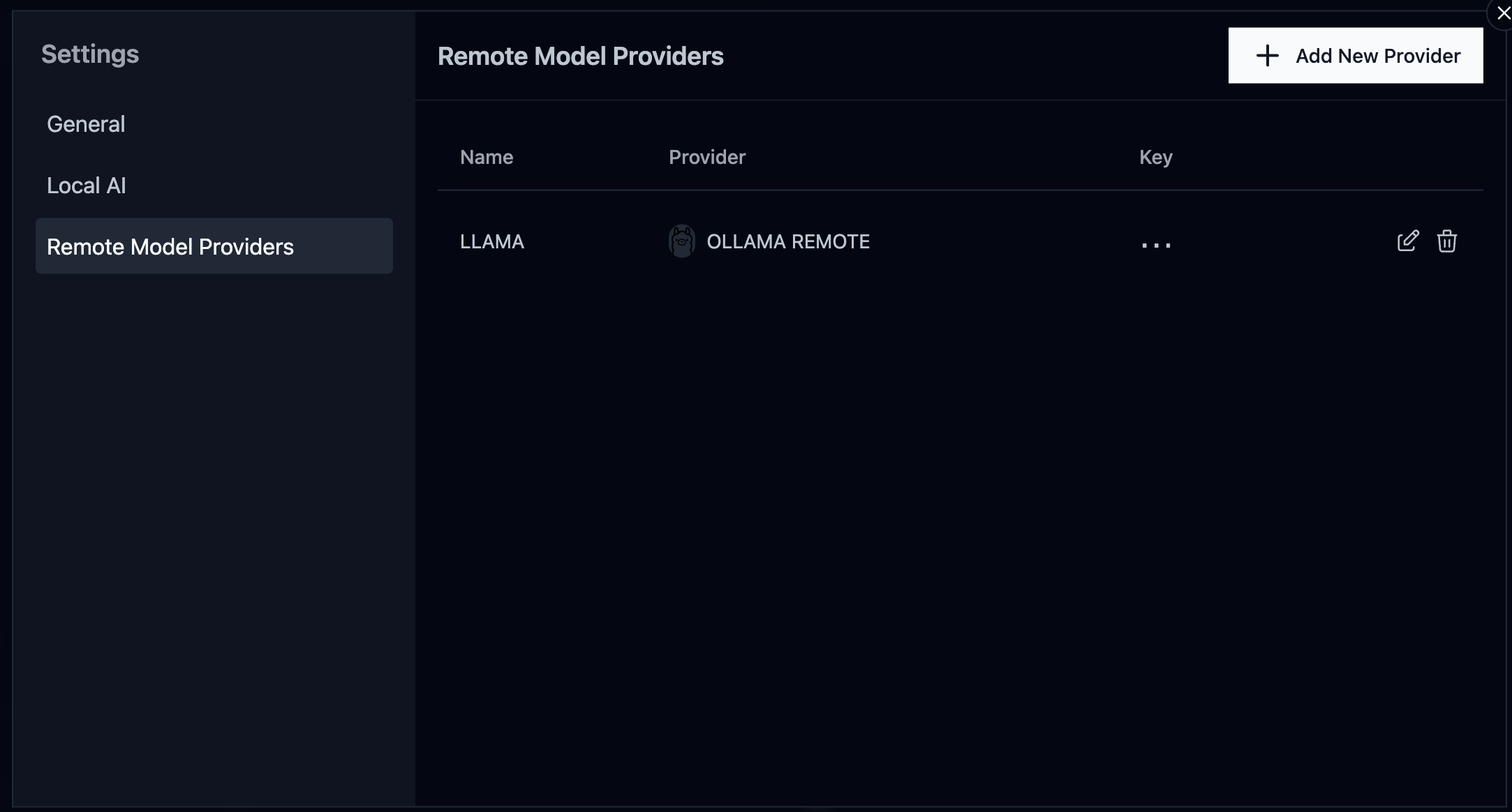 아래와 같이 Setting 진입 후, Add New Provider를 선택하여 서버의 endpoint 정보를 입력해준다