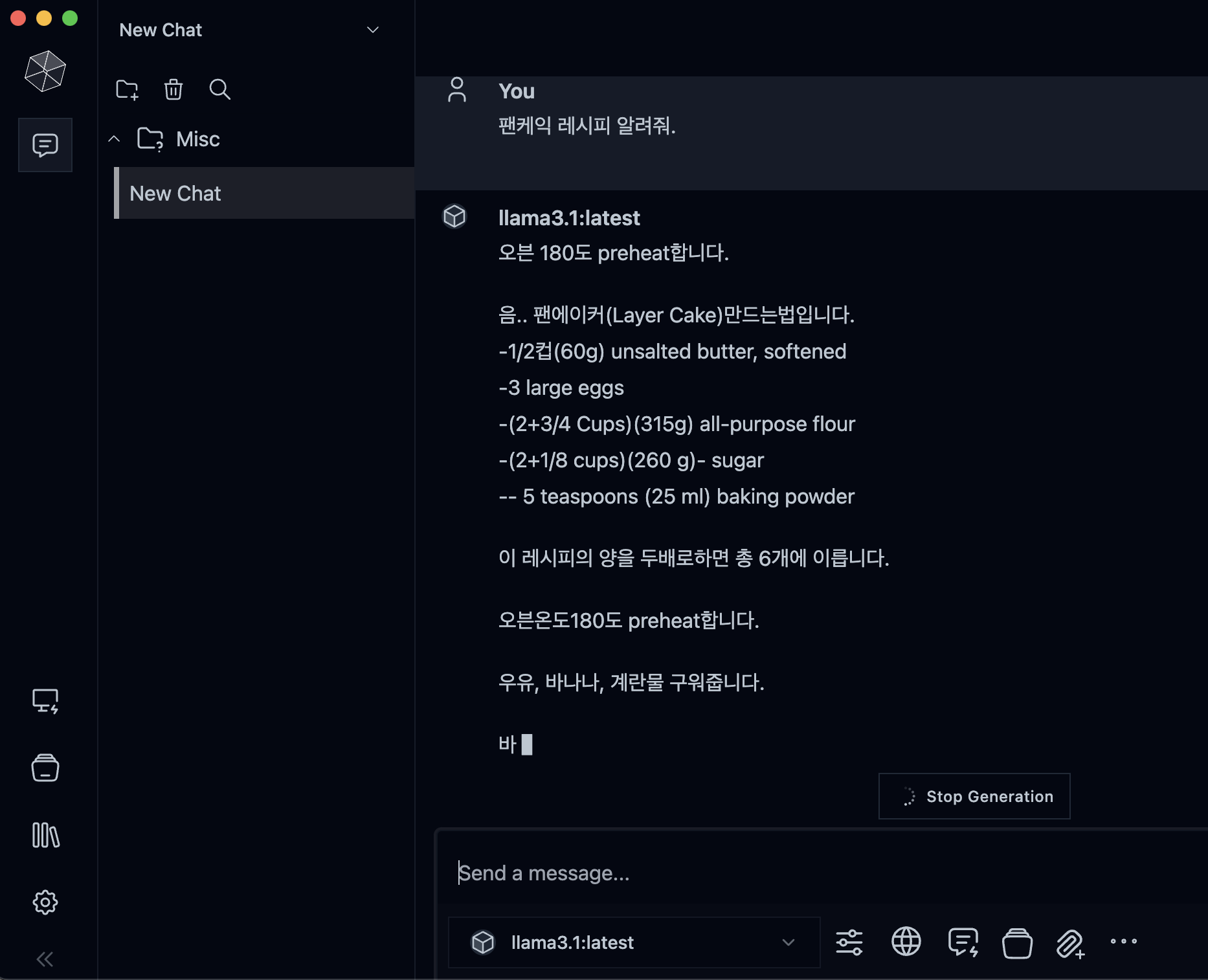 Msty에서 생성형 AI 모델에 대한 UI를 지원해준다. 설치 후 구축한 서버로 endpoint를 설정해주면 Msty앱에서 생성형 AI를 사용할 수 있다.
