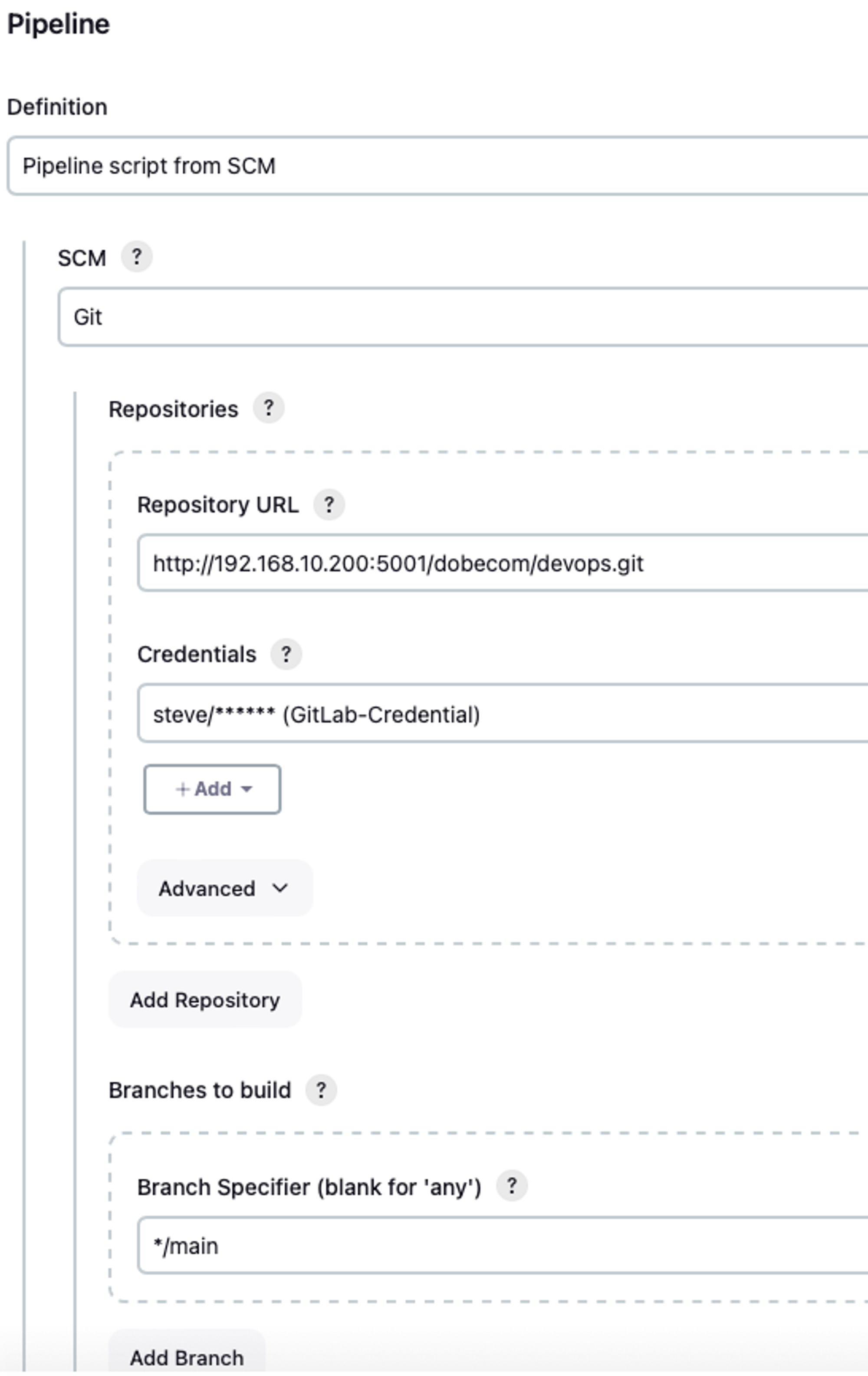 git url: 'http://192.168.10.200:5001/dobecom/nest-msa.git', branch: 'dev', credentialsId: 'GitLab-Credential'