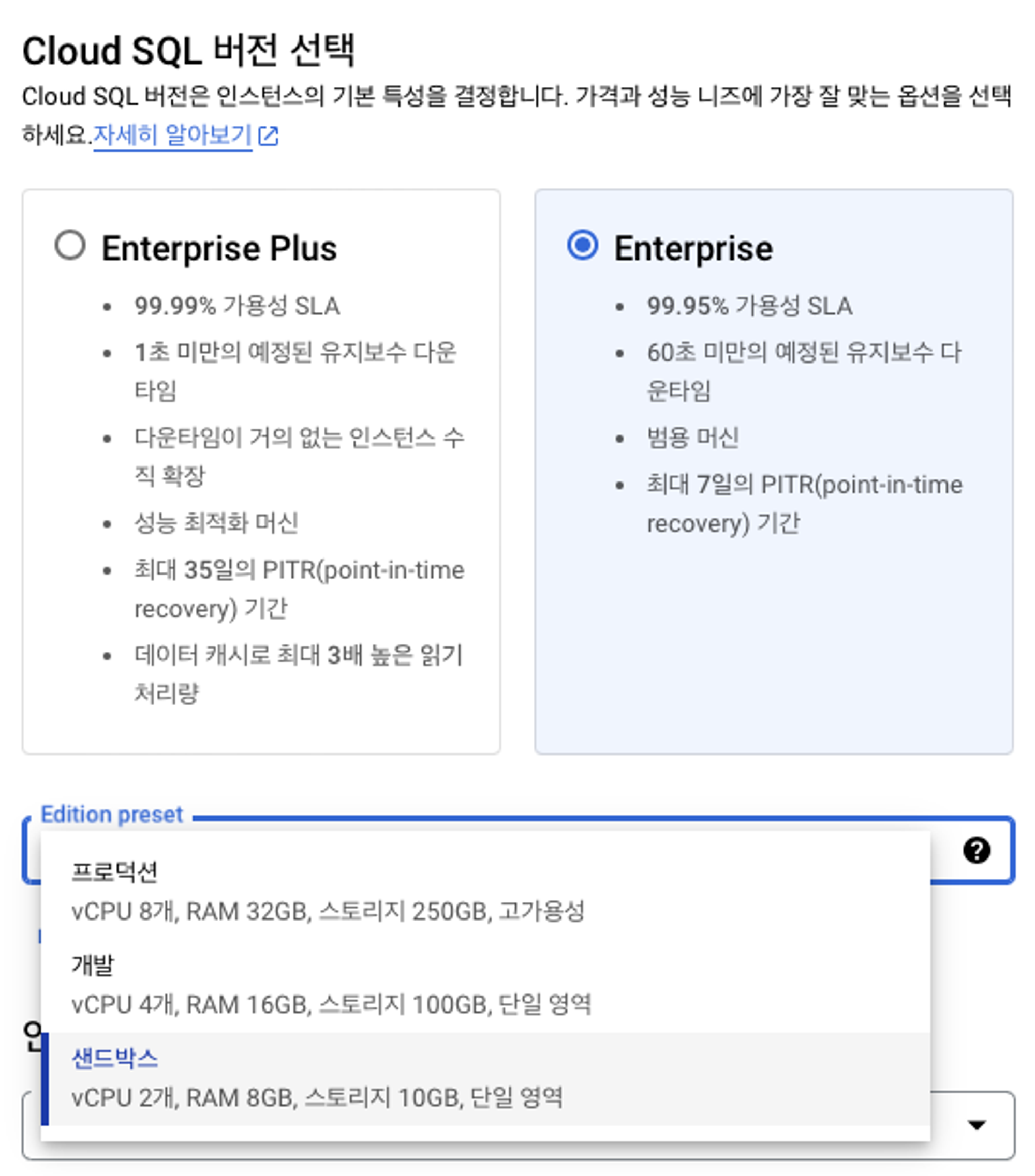 - 테스트 환경에서 사용할 DB 서버를 생성할 것이기 때문에 최소 비용 옵션을 선택