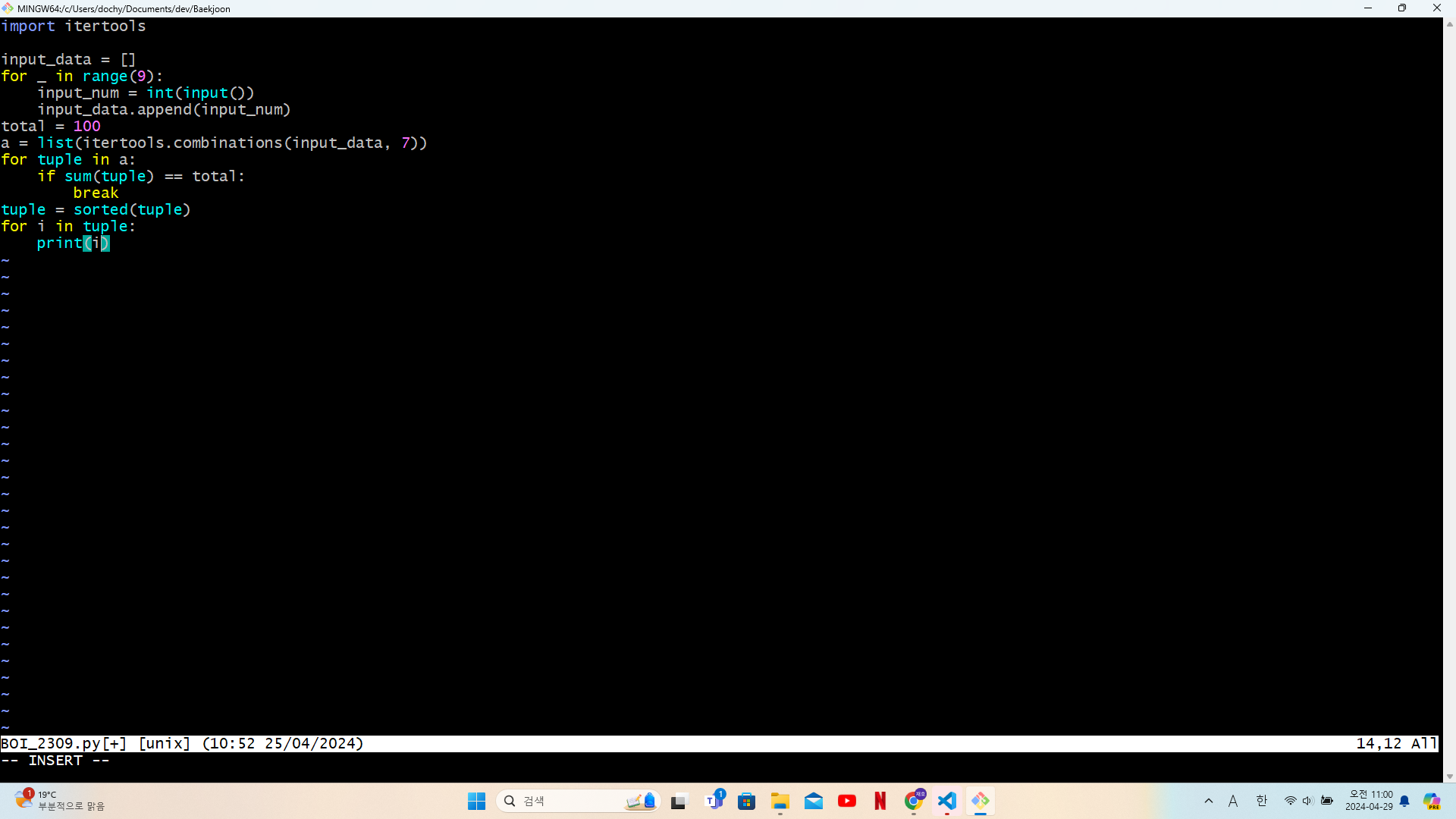- Insert mode: 입력 모드로 전환하려면 Normal 모드에서 i 키를 누르기