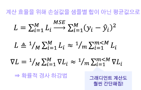 Gradient descent는 주어진 데이터셋에 대해 손실 함수(Loss)를 최소화하기 위한 최적화 알고리즘이다. 모든 샘플에 대해 손실을 계산하고 이를 기반으로 가중치를 업데이트한다. 하지만 모든 샘플을 사용하여 계산하면 연산량이 너무 많아진다. 이 문제를 해결하기 위해 Stochastic Gradient Descent(SGD)를 사용한다.