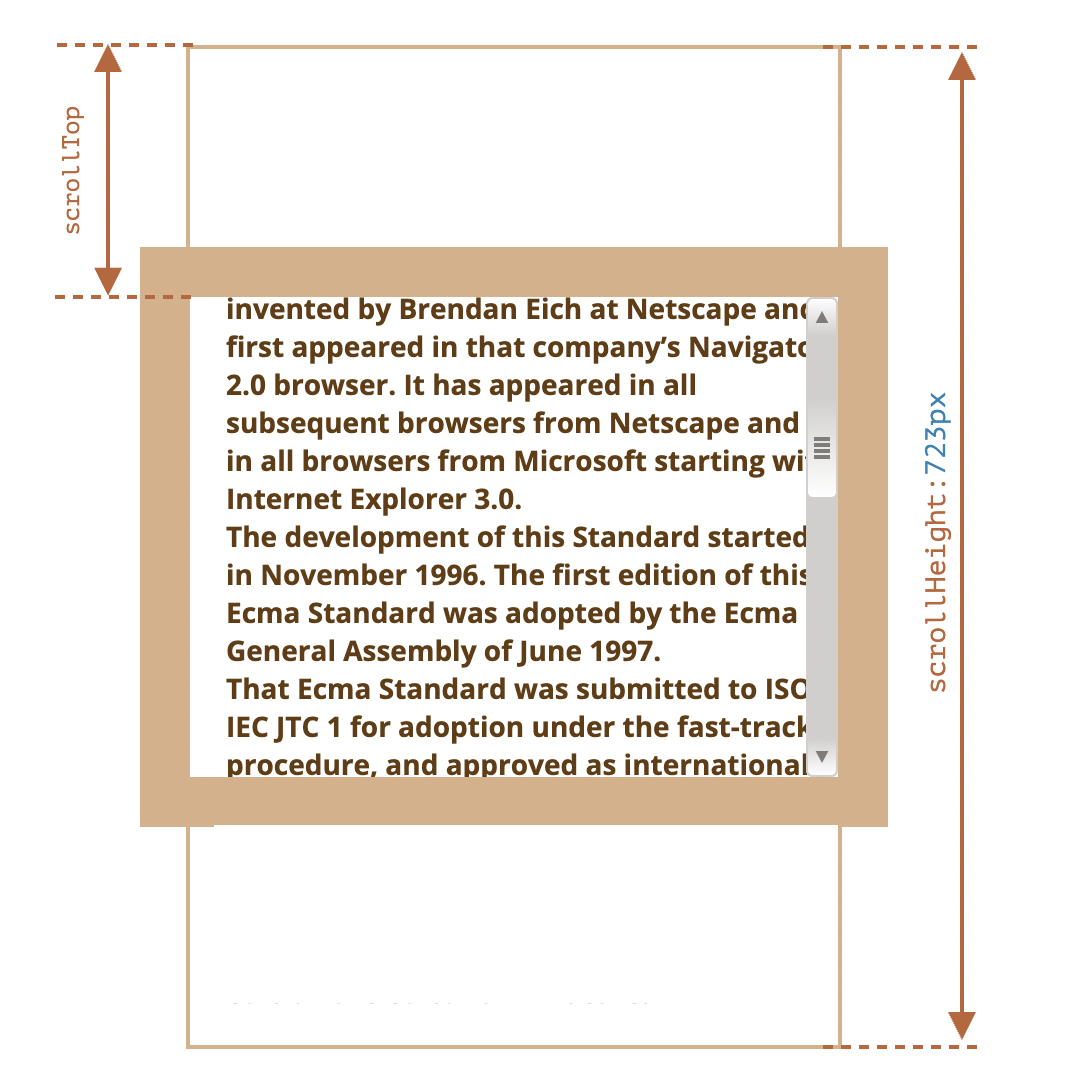 scroll은 스크롤에 의해서 감춰져있는 길이의 정보를 알려줍니다. (스크롤바 크기는 마찬가지로 포함되지 않습니다.)