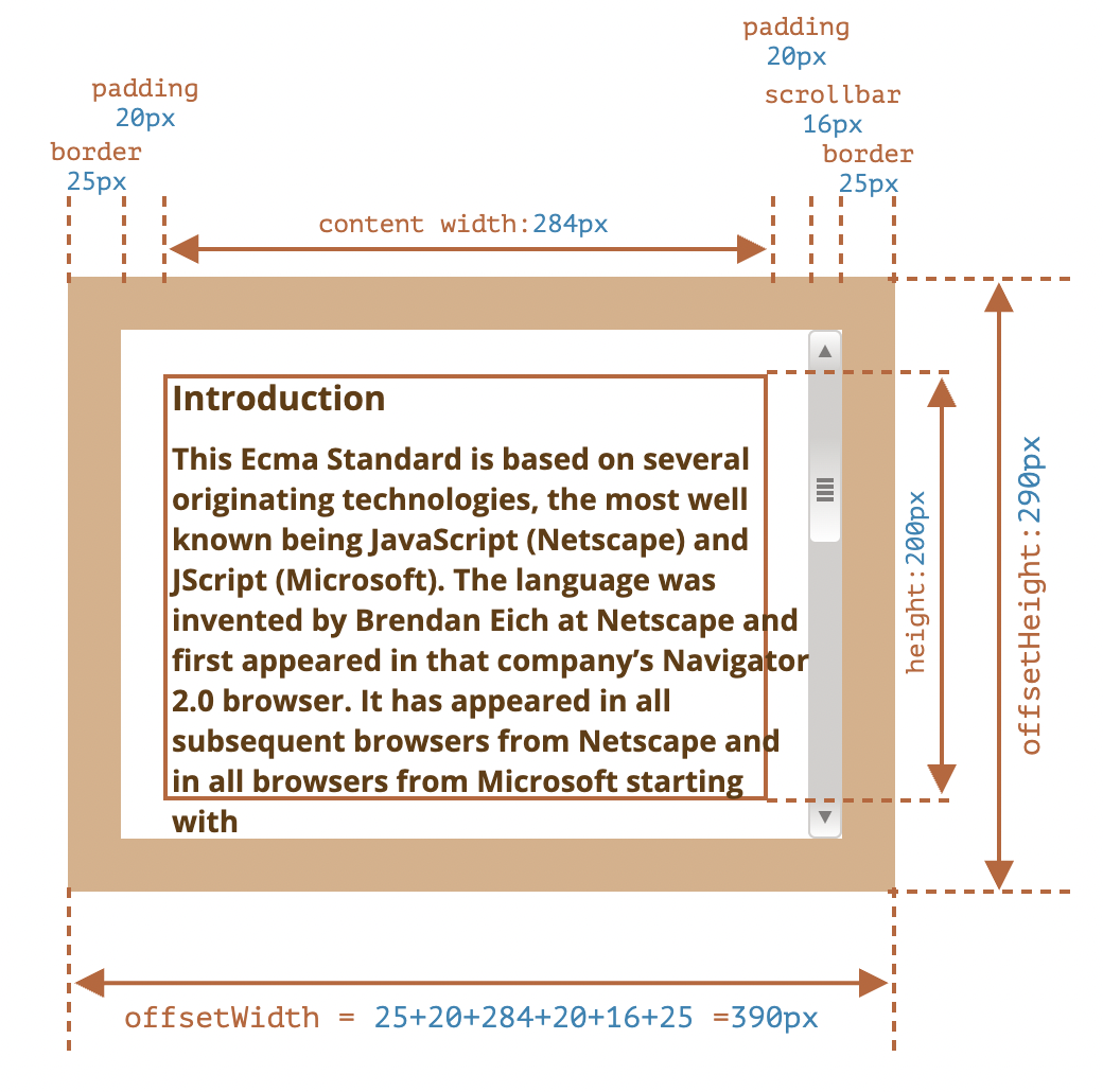 offsetWidth/Height 프로퍼티는 요소가 차지하는 너비와 높이 정보를 제공합니다. (margin 제외)