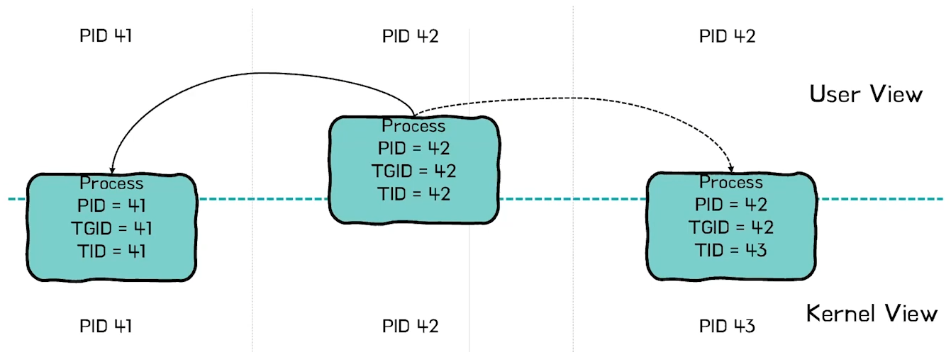 커널 입장에서 보면 tid를 pid로 인식
