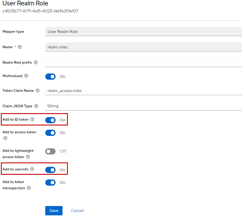 - Groups field name: Client scopes 에서 수정했던 realm roles의 token claim name