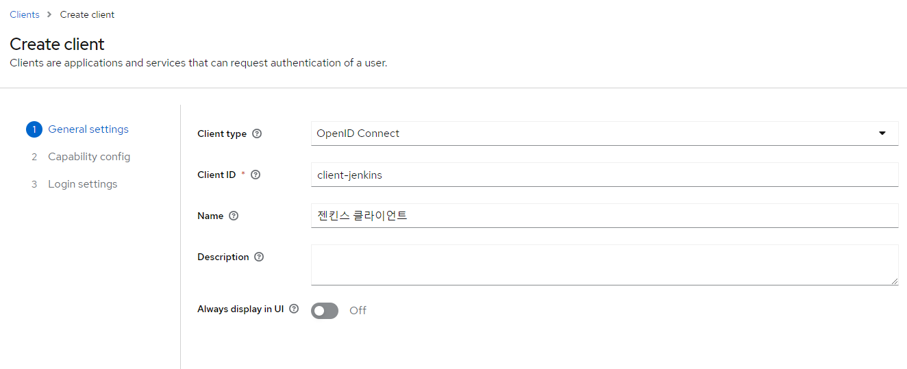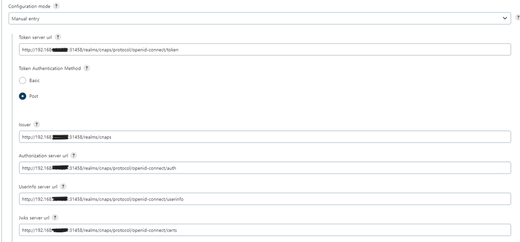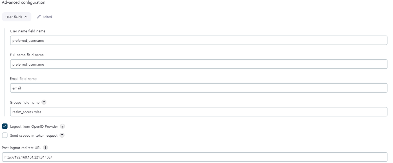 - Post logout redirect URL: jenkins URL || logout 후 리다이렉트 될 URL