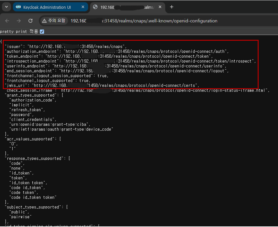 📍 Keycloak > Realm settings > General > Endpoints > OpenID Endpoint Configuration에서 value 확인