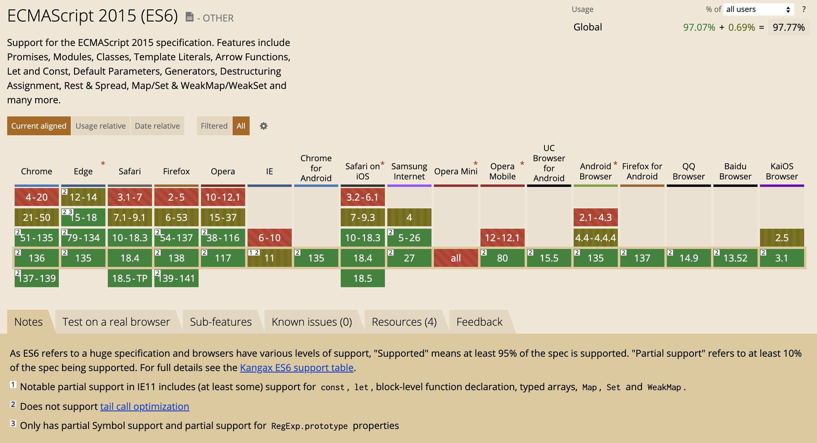 트랜스파일러를 이용하여 팀에서 지원하고자 하는 범위에서 실행될 수 있도록 트랜스파일링하여 구형 브라우저에서도 사용할 수 있도록 해야 합니다.
