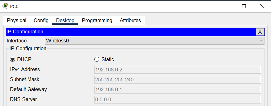DHCP 서버로 자동연결된다. 즉 무선라우터가 서버의 역할도 수행한다.