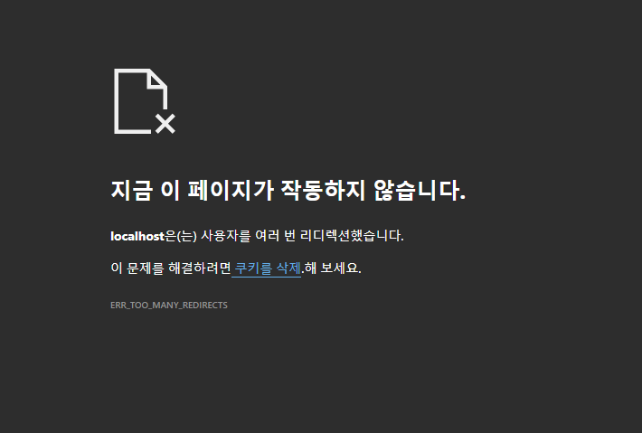 localhost에서 리디렉션 한 횟수가 너무 많습니다.