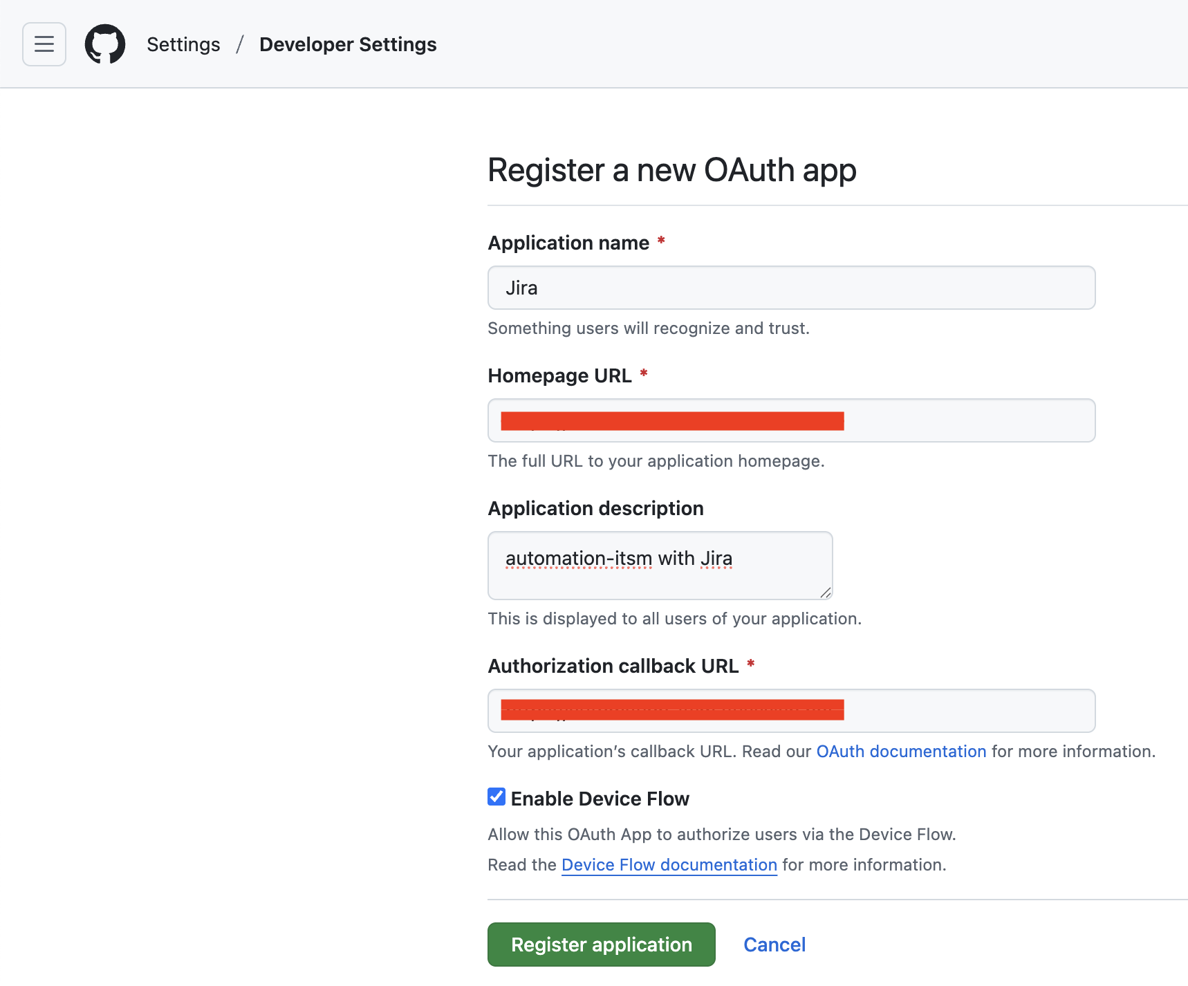 Authorization callback URL : Jira의 프로젝트 주소 (예)https://프로젝트명.atlassian.net