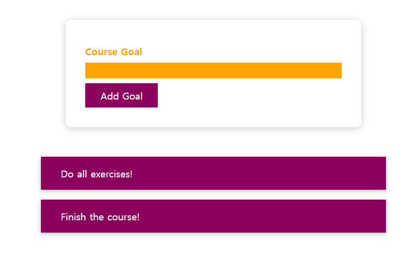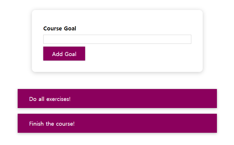 현재 만들어진 프로젝트는 input 창에 아무것도 입력하지 않아도 Add Goal버튼을 누르면 빈 값이 추가가 가능한데, 만약 사용자가 입력한 값이 빈 값이면 추가를 하지 못하게 막고, 값이 유효하지 않다고 표시하는 기능을 만들어보았다.