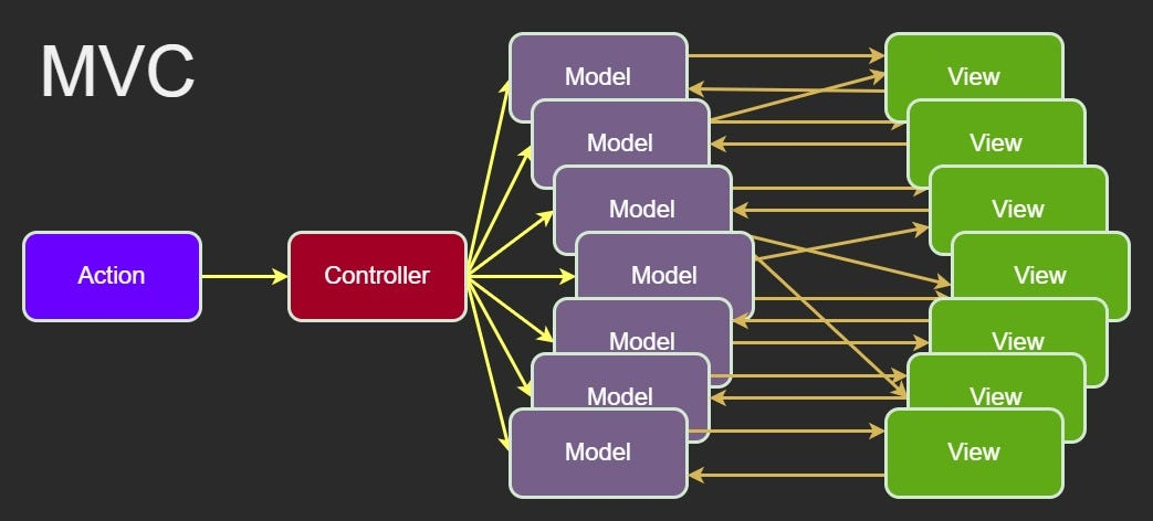 이런 문제점을 해결하기 위해 Flux 구조가 등장하였다.