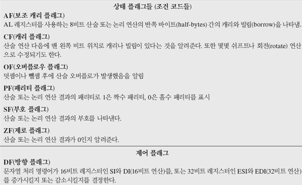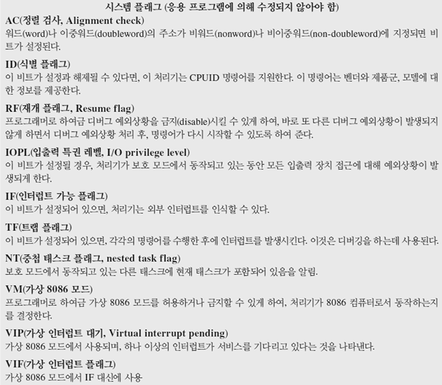 - 다음과 같이 처리기의 동작을 제어하기 위해 사용되는 다양한 처리기 레지스터가 있다.