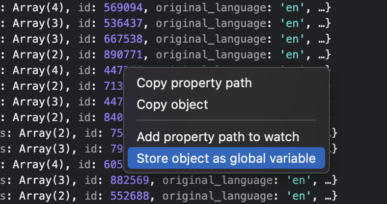 2. 우측 마우스 클릭 Store object as global variable 클릭한다.