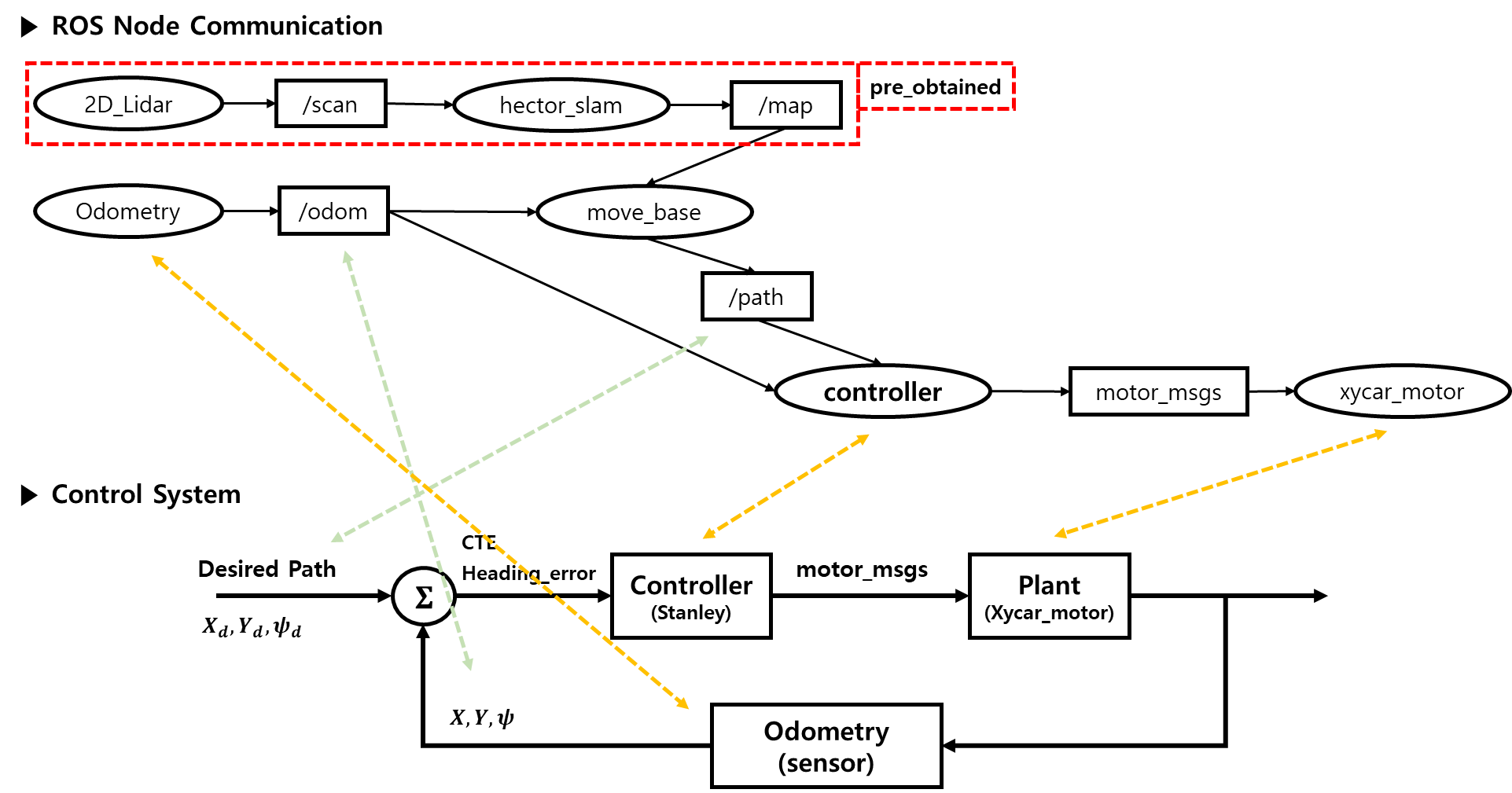 slam을 이용해 desired path정보를 취득한 뒤 stanley method를 사용해 차량을 제어하는 것을 초기 목표로 삼았다.