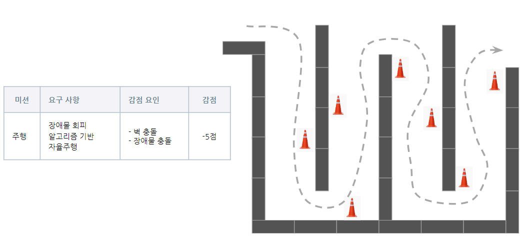 Xycar의 라이다(Lidar), 초음파(Ultrasonic), 카메라(Camera) 센서를 사용해 라바콘 장애물이 있는 미로를 탈출하는 것을 목표로 한다.