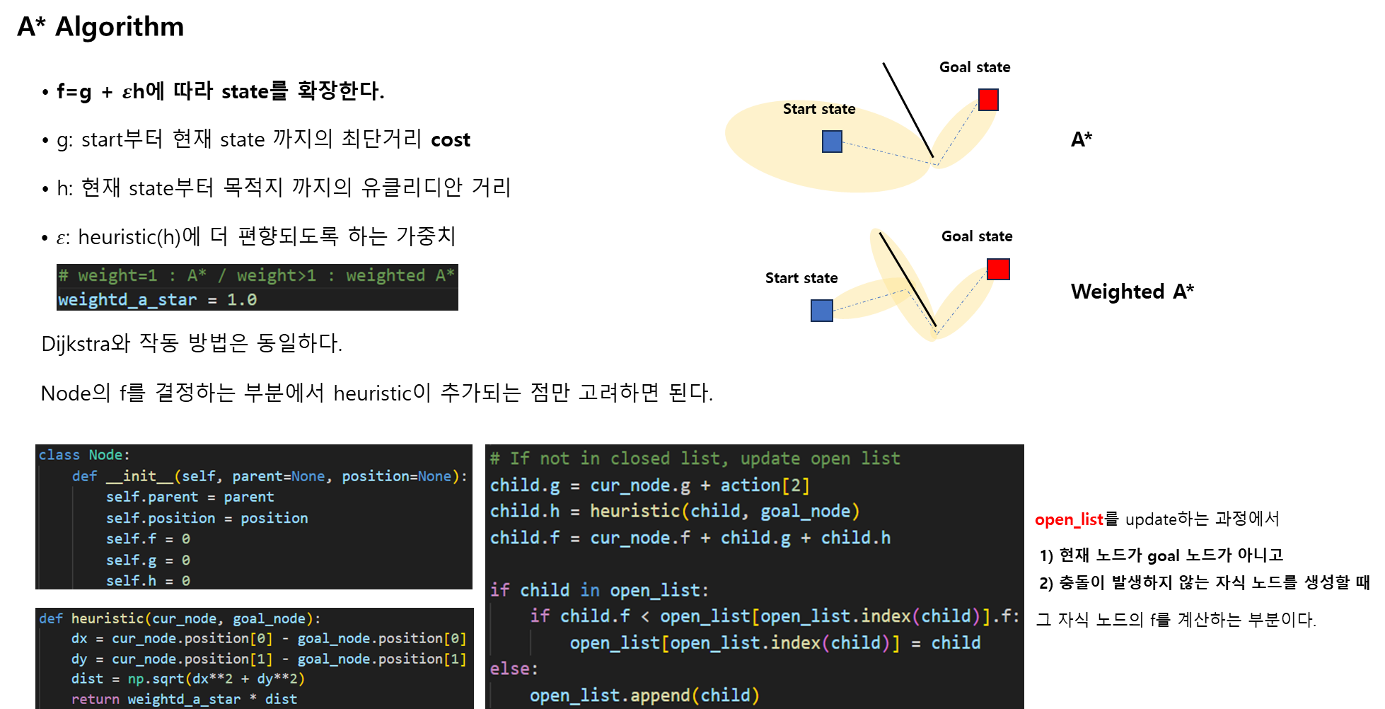 4) (Weighted) A Algorithm을 구현할 수 있다.