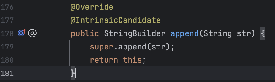 StringBuilder는 메서드 체이닝이 가능하다.