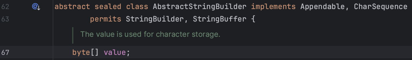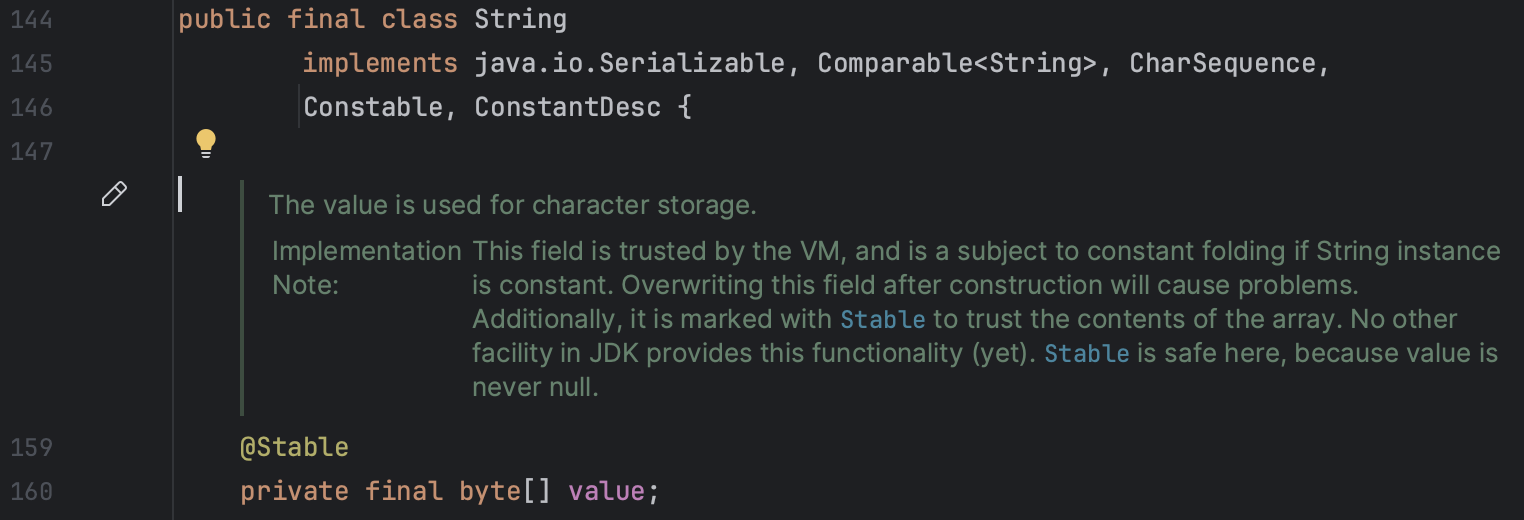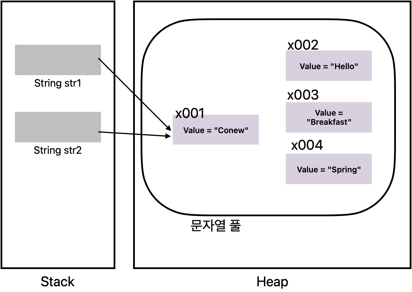 에 실제 값이 보관된다.String은 불변객체이므로 중간에 값을 수정할 수 없다.