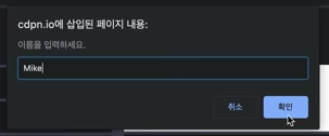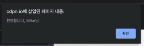 뒤에서 다룰 prompt 함수를 통해 이름을 Mike로 입력받고 출력한다.