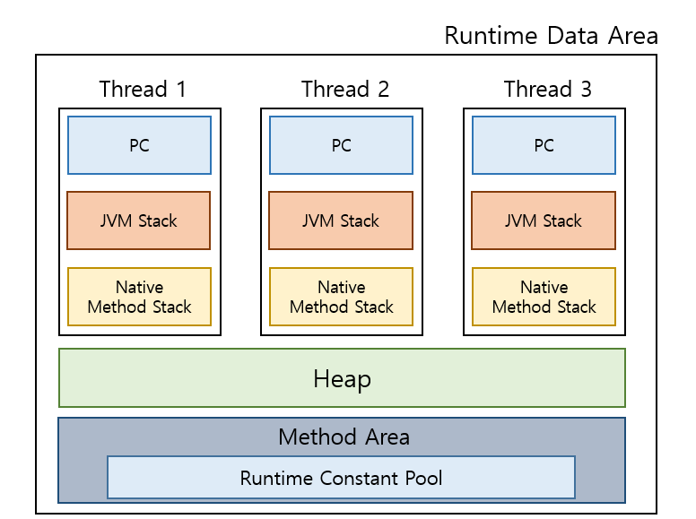 런타임 데이터 영역은 JVM이 프로그램을 실행하면서 사용하는 메모리 공간입니다. 각 영역의 특성과 역할을 정확히 이해하는 것이 성능 최적화의 핵심입니다.