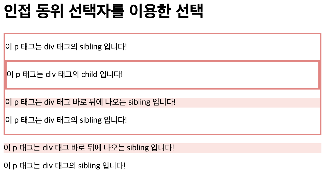 <p>이 p 태그는 div 태그 바로 뒤에 나오는 sibling 입니다!</p>