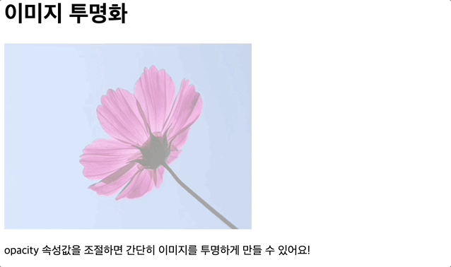opacity 속성을 이용하면 HTML 요소의 투명도를 조절할 수 있다.