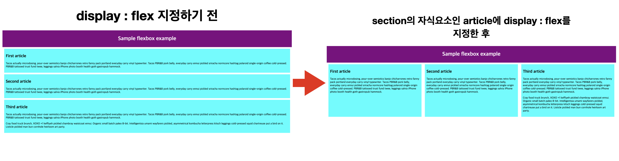 section { /* article의 부모 요소에 displat : flex 적용 */