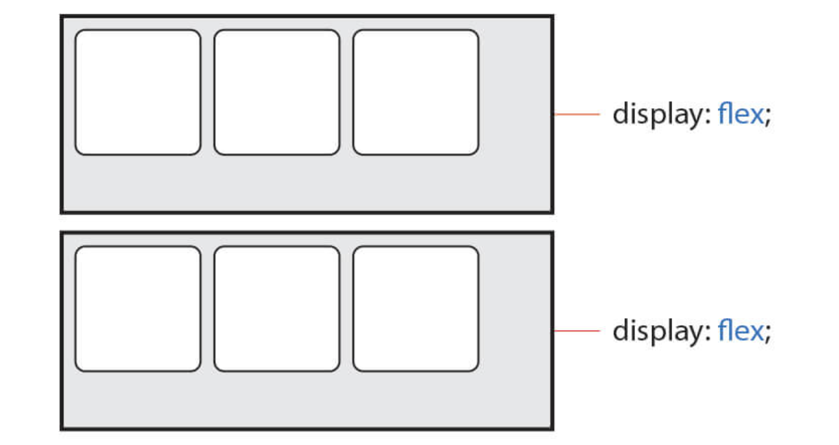 display : flex로 지정된 flex container는 block 요소와 같은 성향(수직 쌓임)을 가진다. -> 단, 여기서의 수직 쌓임은 items가 아니라 container이다(내부 item들에는 영향을 주지 않음).