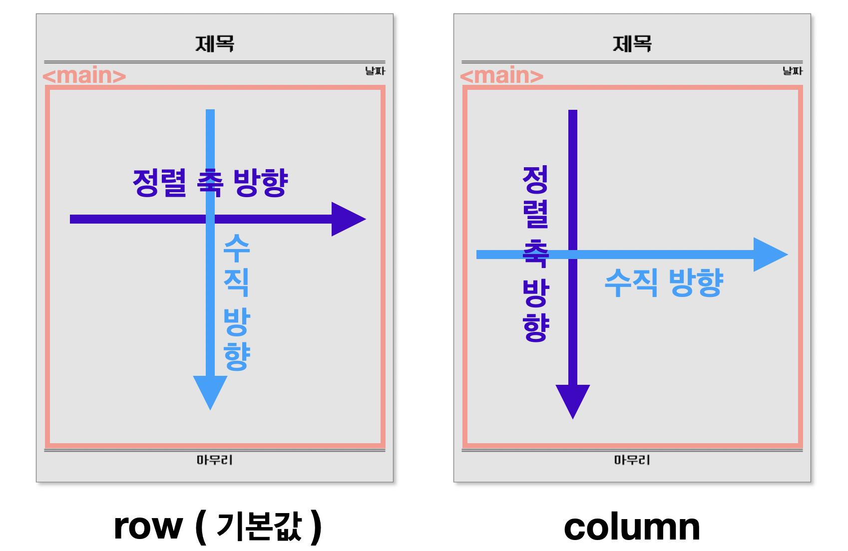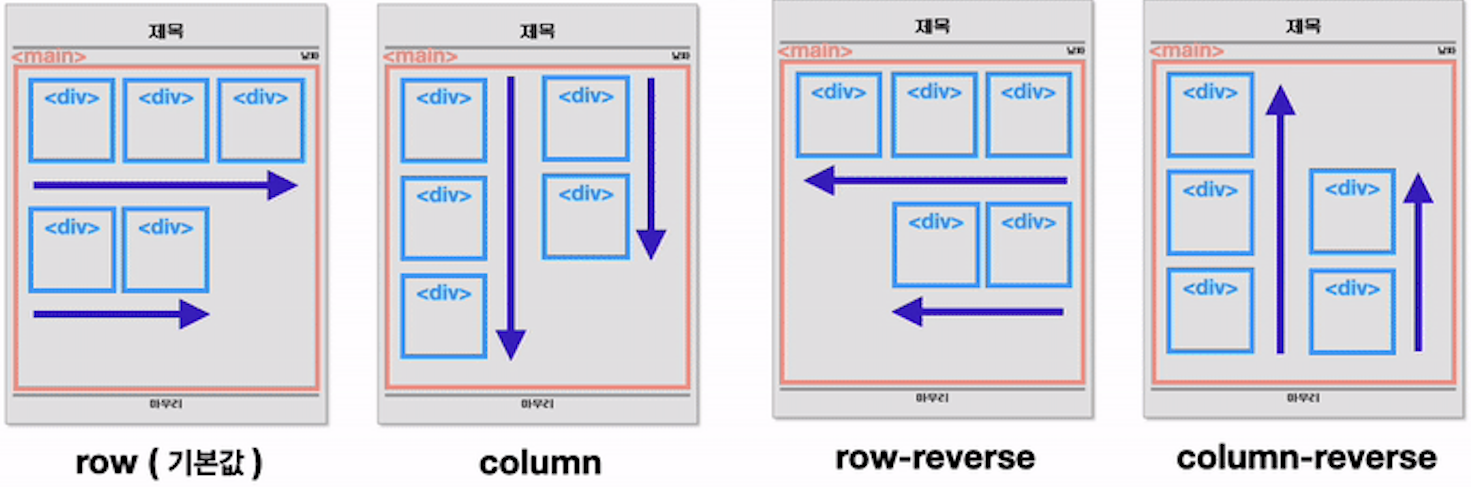 flex item(자식 요소)들이 위에서부터 시작하여 세로 방향으로 정렬된다. (상 -> 하)