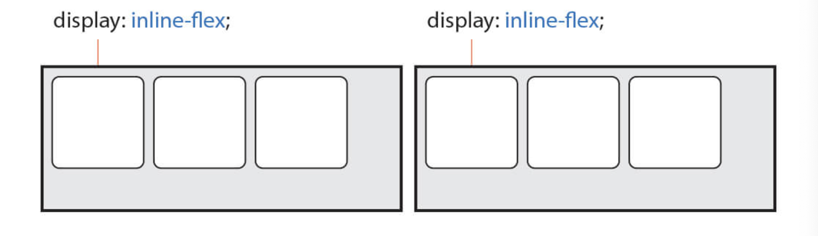 display : inline-flex로 지정된 flex container는 inline- block 요소와 같은 성향(수평 쌓임)을 가진다. -> 단, 여기서의 수평 쌓임은 items가 아니라 container이다(내부 item들에는 영향을 주지 않음)..flex를 쓰던 inline-flex를 쓰던 내부 item은 수평으로 정렬되며, flex-container가 2개 이상 연속으로 위치해 있을 때에 block, inline 속성값이 영향을 미친다.flex container(부모 요소) 안의 직계 자식 요소들이 반응형으로 동작하지 않기 때문에 거의 사용하지 않는다.